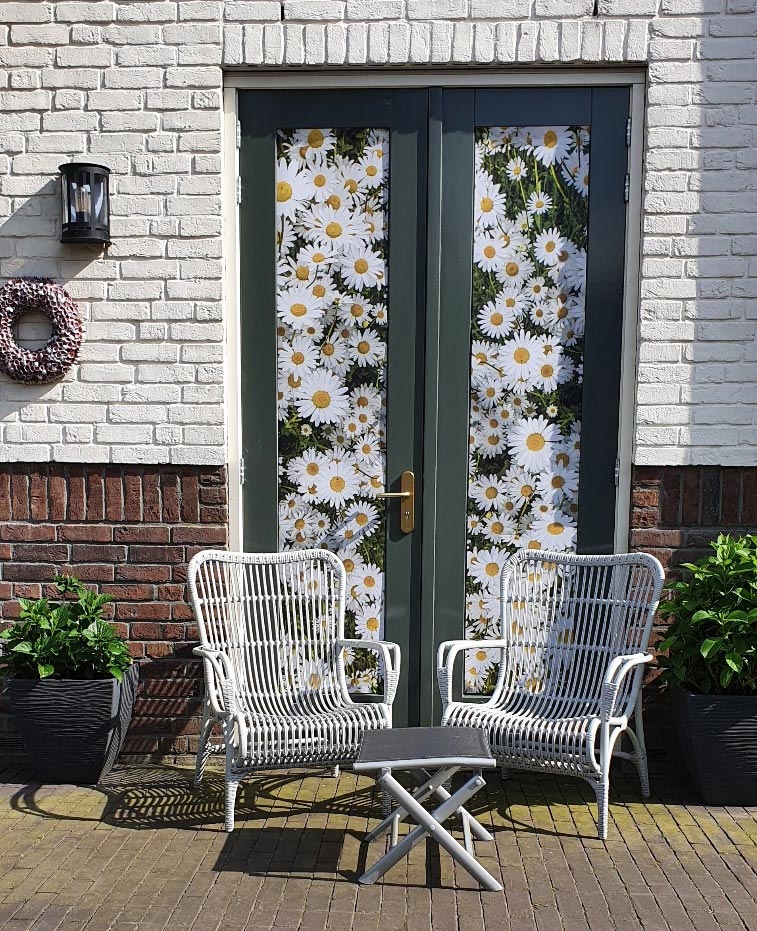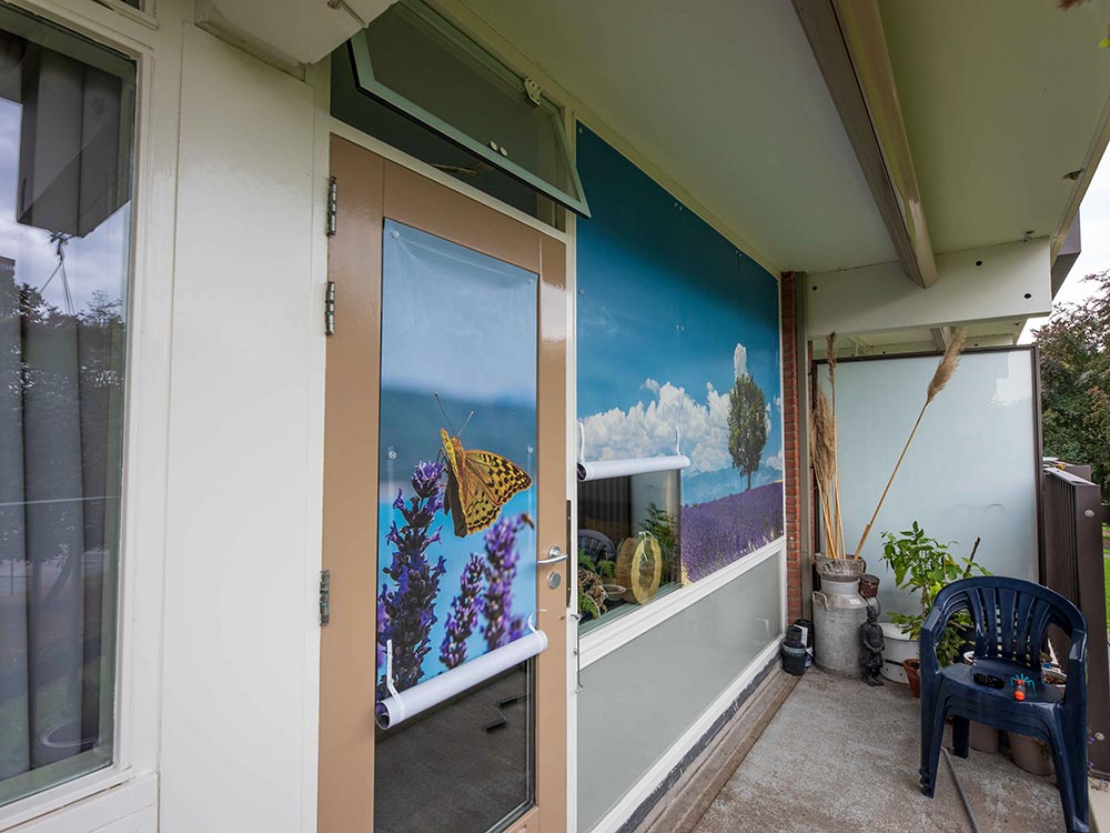 Doordat het doek aan de buitenzijde wordt geplaatst, vermindert het de warmte-instraling en blijft de binnentemperatuur langer aangenaam. De opdruk geeft het doek een decoratieve uitstraling. Kies uit een uitgebreide bibliotheek met afbeeldingen en designs.